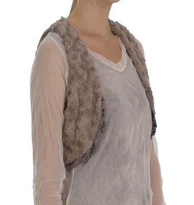 Faux Fur Cropped Bolero Vest Size L Mocha Taupe Rosette Satin Open Boho Fall NWT