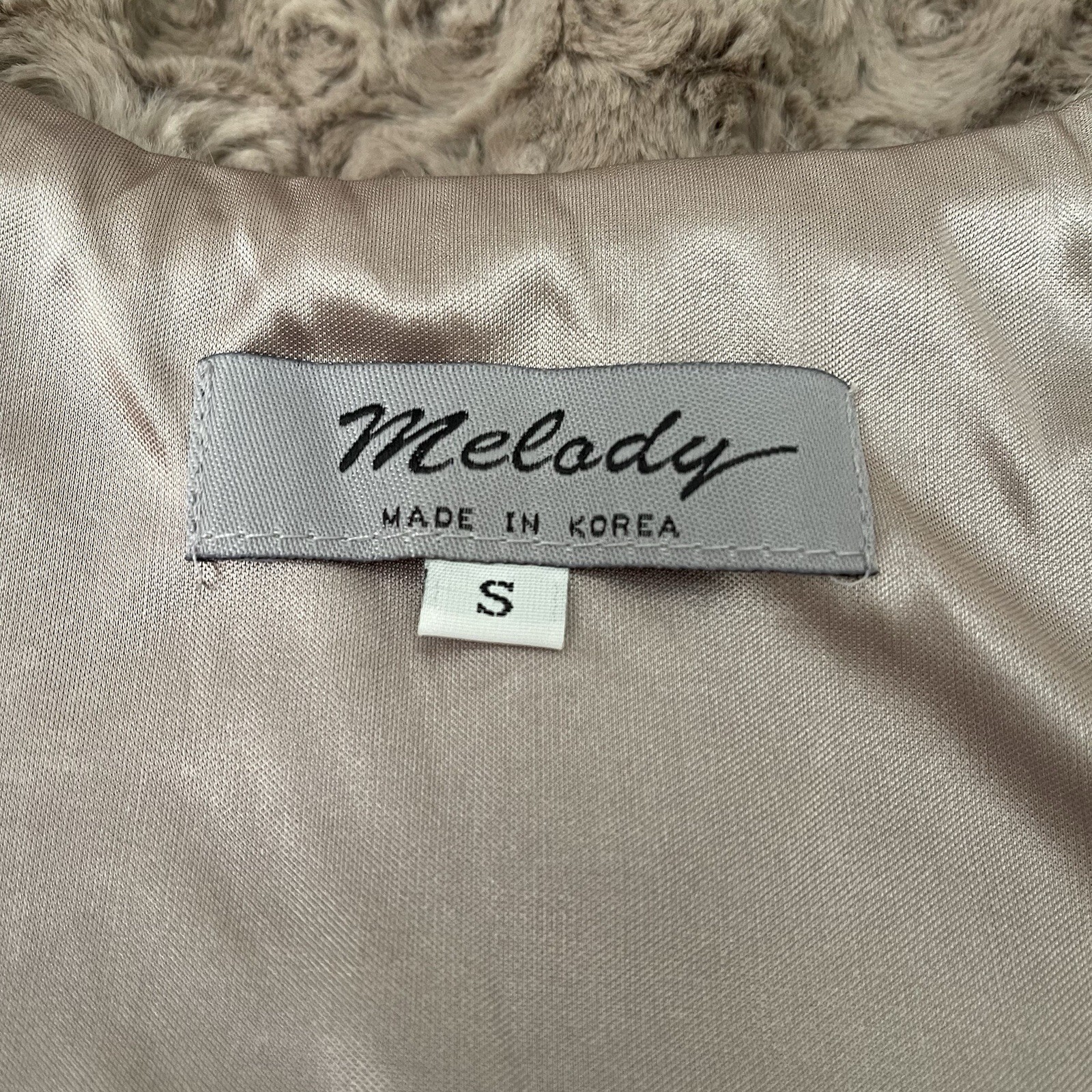 - Faux Fur Cropped Bolero Vest Size S Mocha Taupe Rosette Satin Open Boho Fall NWT