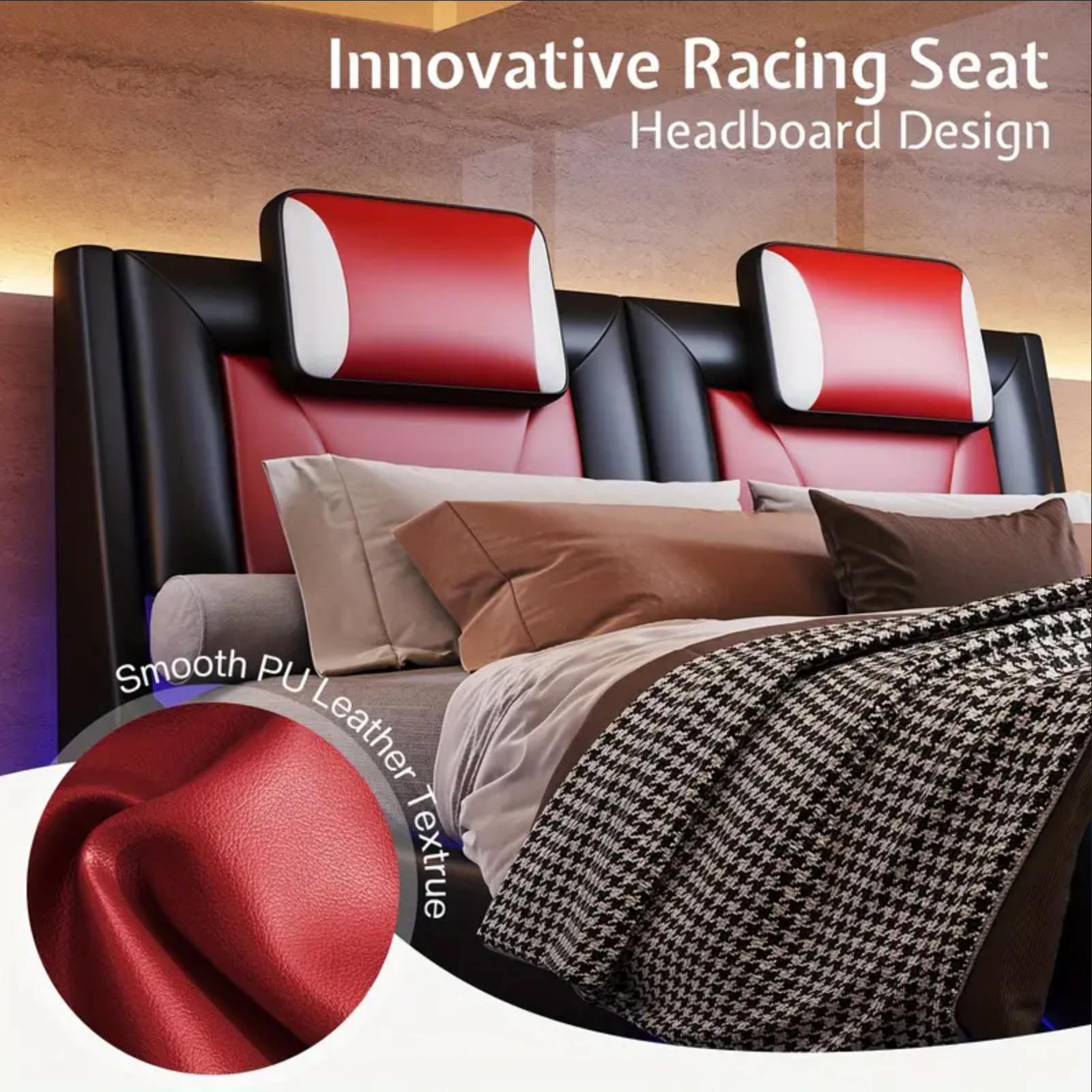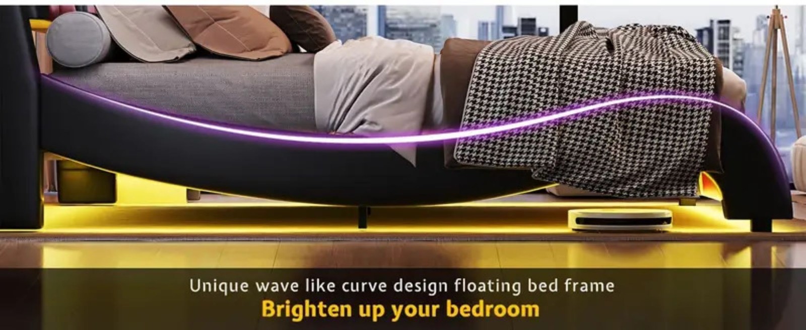 suit your preferences.The bed frame's hidden under-bed LEDs imbue your