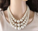 Showcase classic elegance with this authentic vintage triple strand faux pearl lucite choker necklace. This highly desirable piece of mid-century Japan jewelry, likely dating to the 1950s-1960s, features lustrous cream-colored lucite beads in a classic multistrand design. It is the perfect statement necklace for a bridal event, vintage wedding, or elevating casual outfits, offering that desirable retro chunky look.