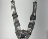 Faux Silver Tone Metal Fringe Teal Stone Bib Necklace