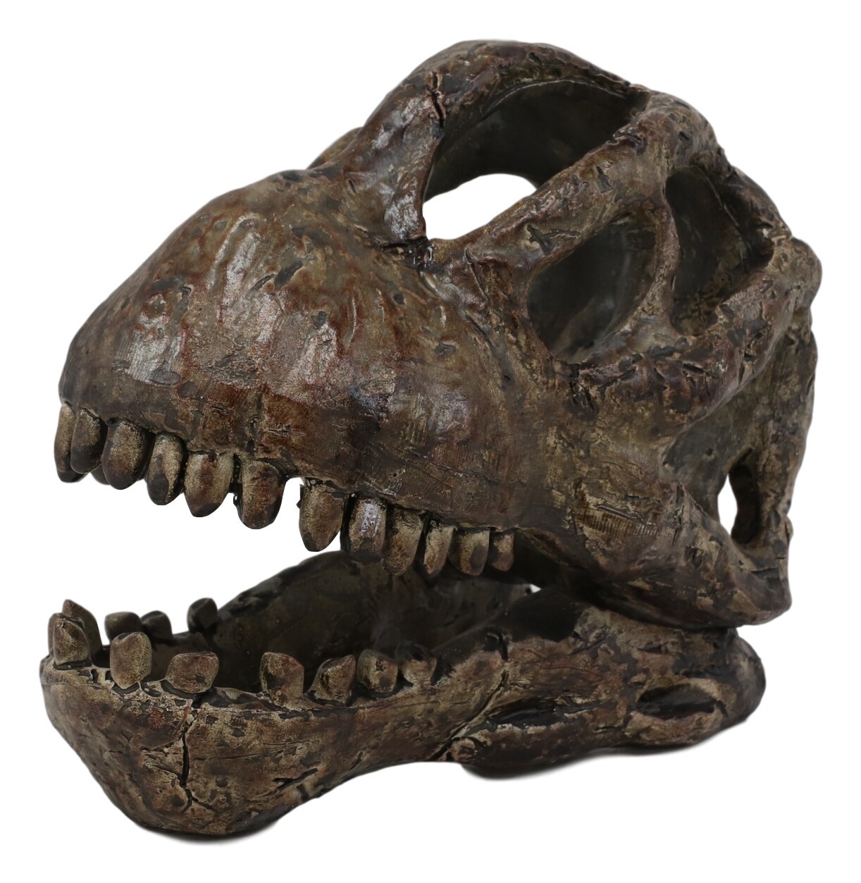 ? Add some dinomighty delight to your space with one of our Dinosaur Skulls. This resin piece features a Brachiosaurus dinosaur skull shape in a rustic bronze finish. Realistic looking, add it to your dinosaur nursery, playroom, office, library or another space!