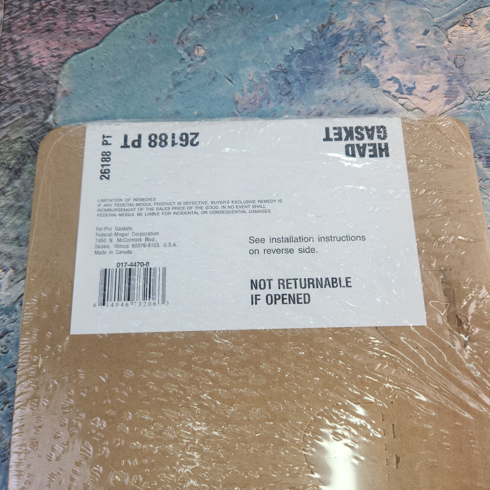 The FelPro 26188PT Cylinder Head Gasket is specifically designed to fit the Ford Mustang Aviator 281 4.6L V8 engine. Made of metal with an item thickness of .034 inches, this head gasket is finished in blue and has a bolt hole quantity of 10 or more. Manufactured by Fel-Pro in Canada, this gasket is positioned in the engine compartment on the left side of the vehicle. With an interior diameter of 3.6 inches, this head gasket is a high-quality replacement part for your vehicle's engine.