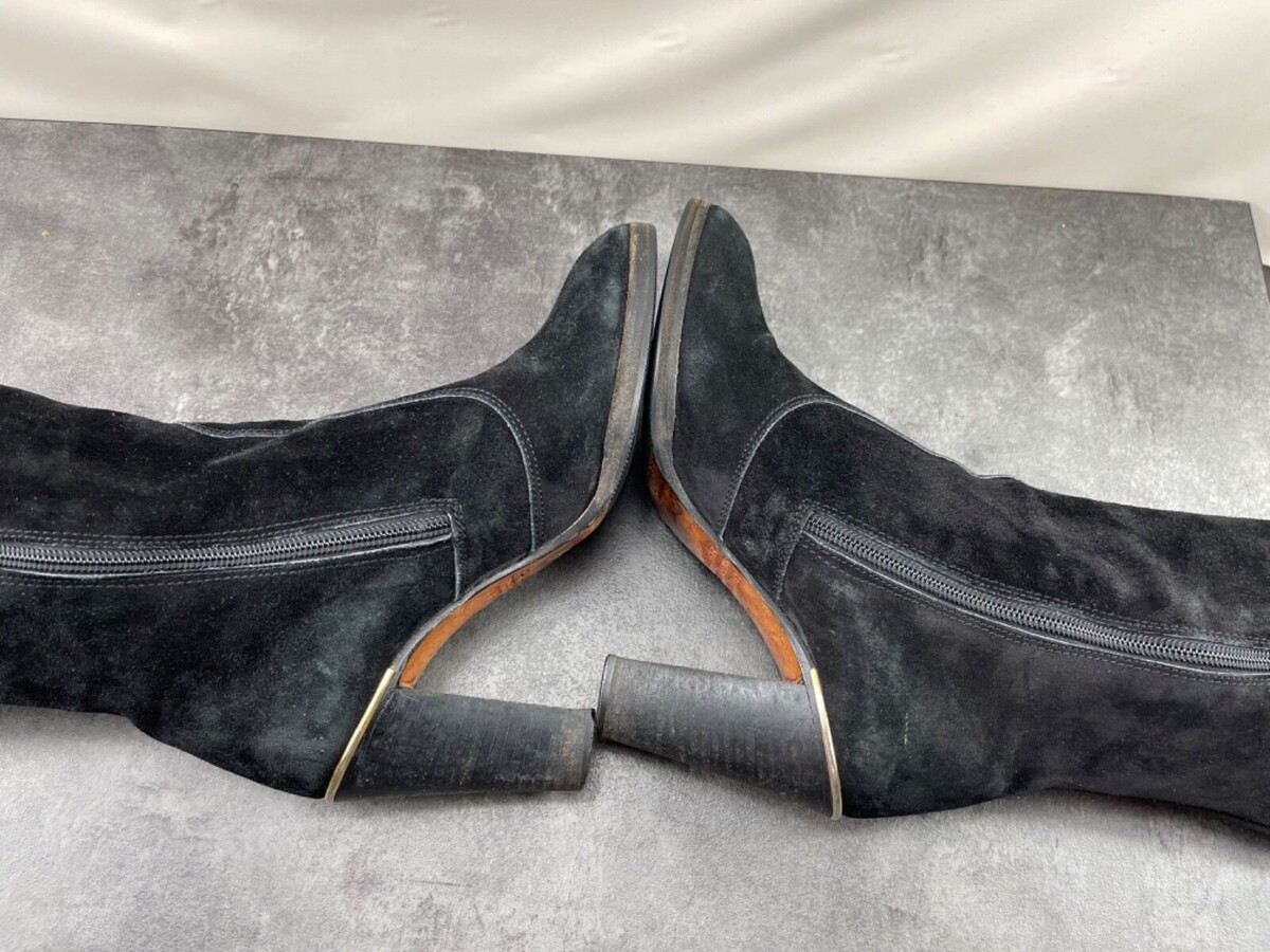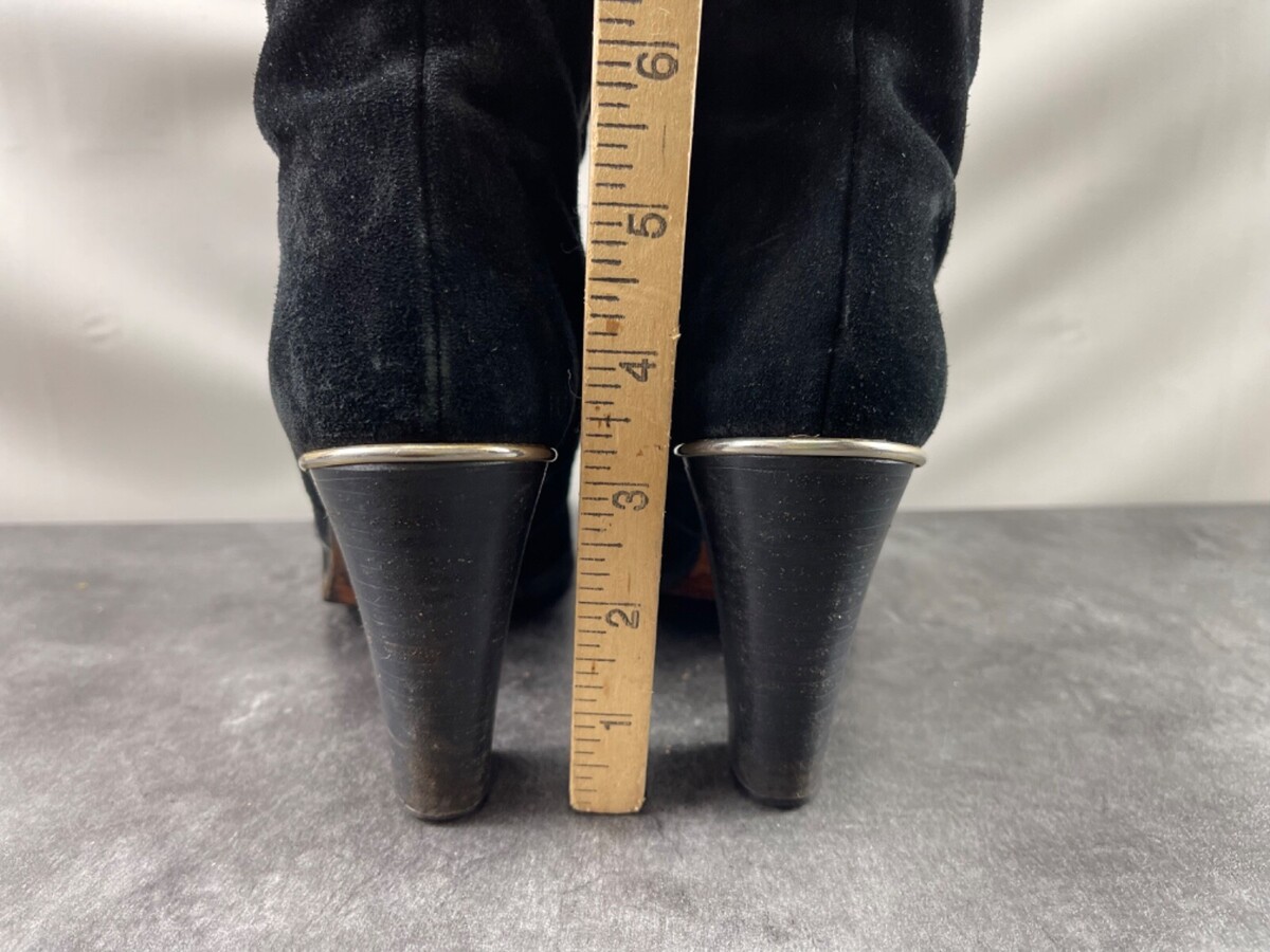 - Felipé Knee High Boots Women 6 M Shoes Black Suede Leather Tall Zipper Heeled