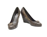 - Fendi Brown Leather Monogram Zucca Details B Buckle Shoes Wedge Heels size 37
