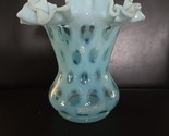 - Fenton Blue Coin Dot 6” tall Vase Ruffled Edge Mid Century Modern MCM Rare