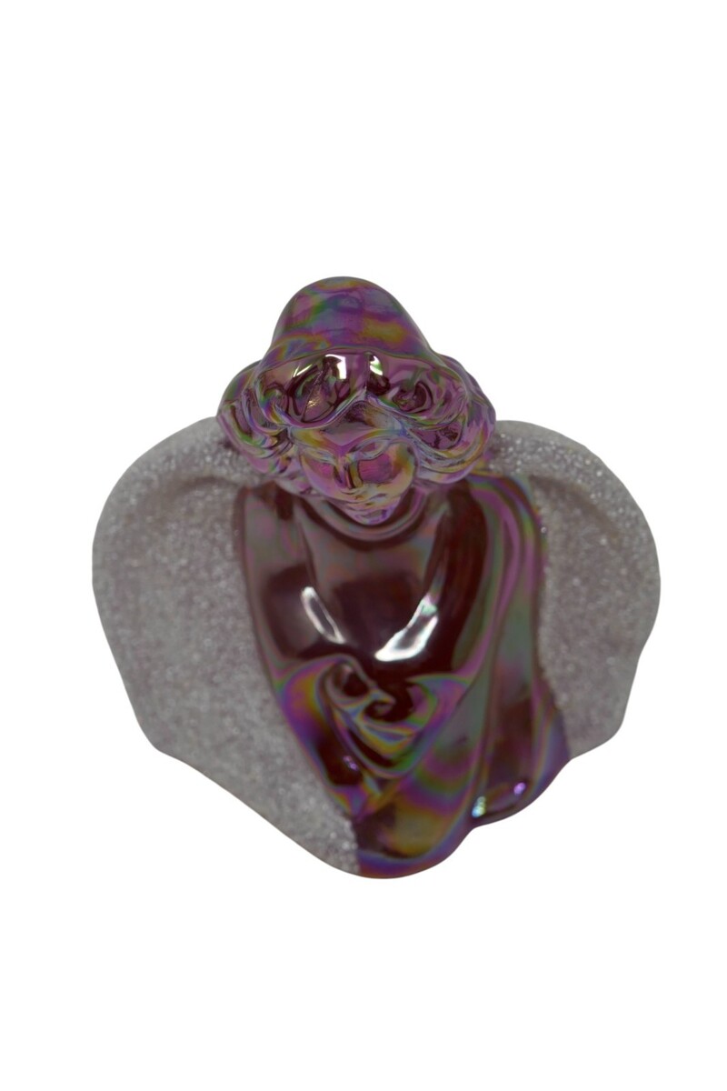 - Fenton Carnival Iridescent Glass Angel with Coralene Frosted Wings