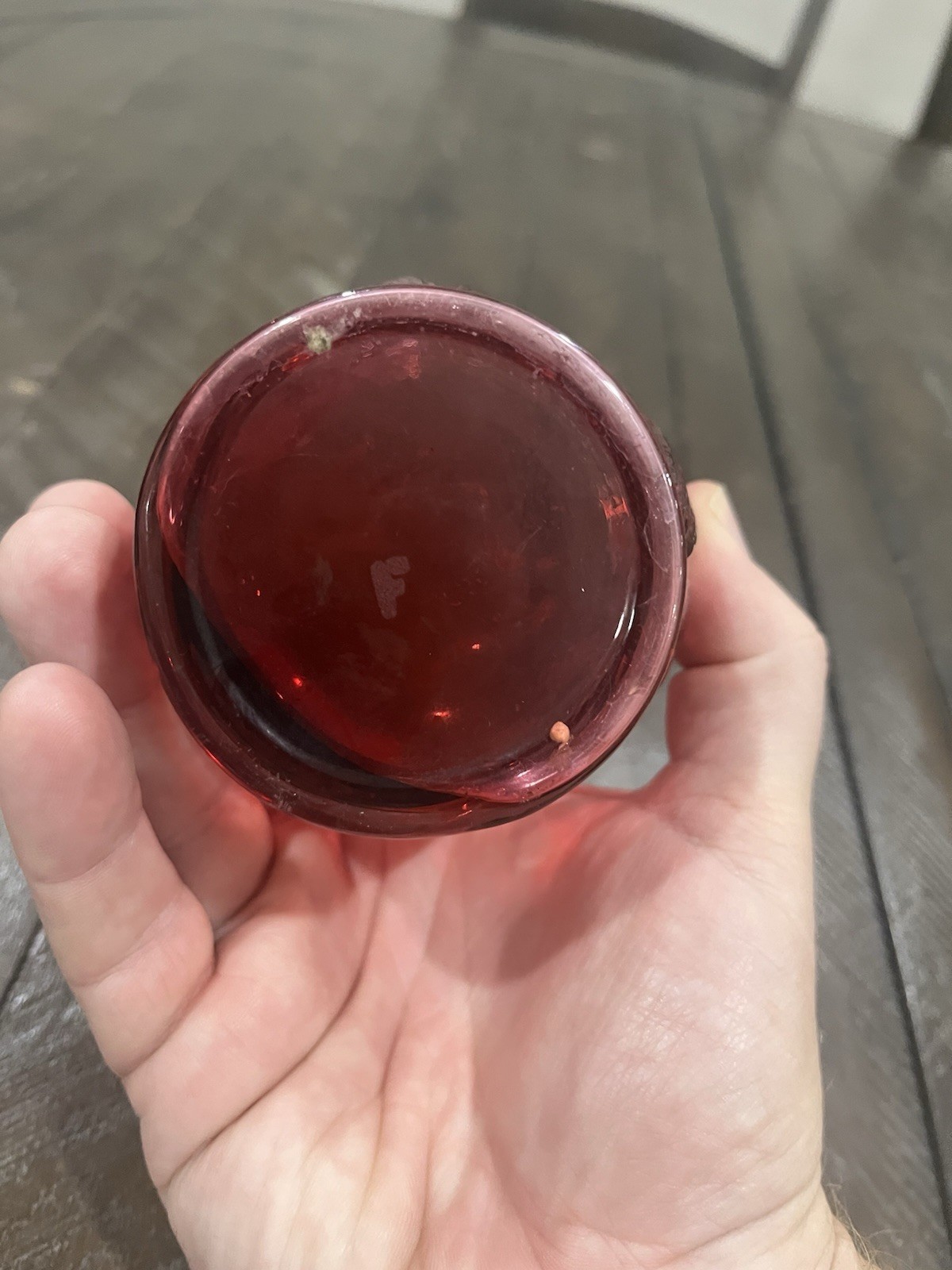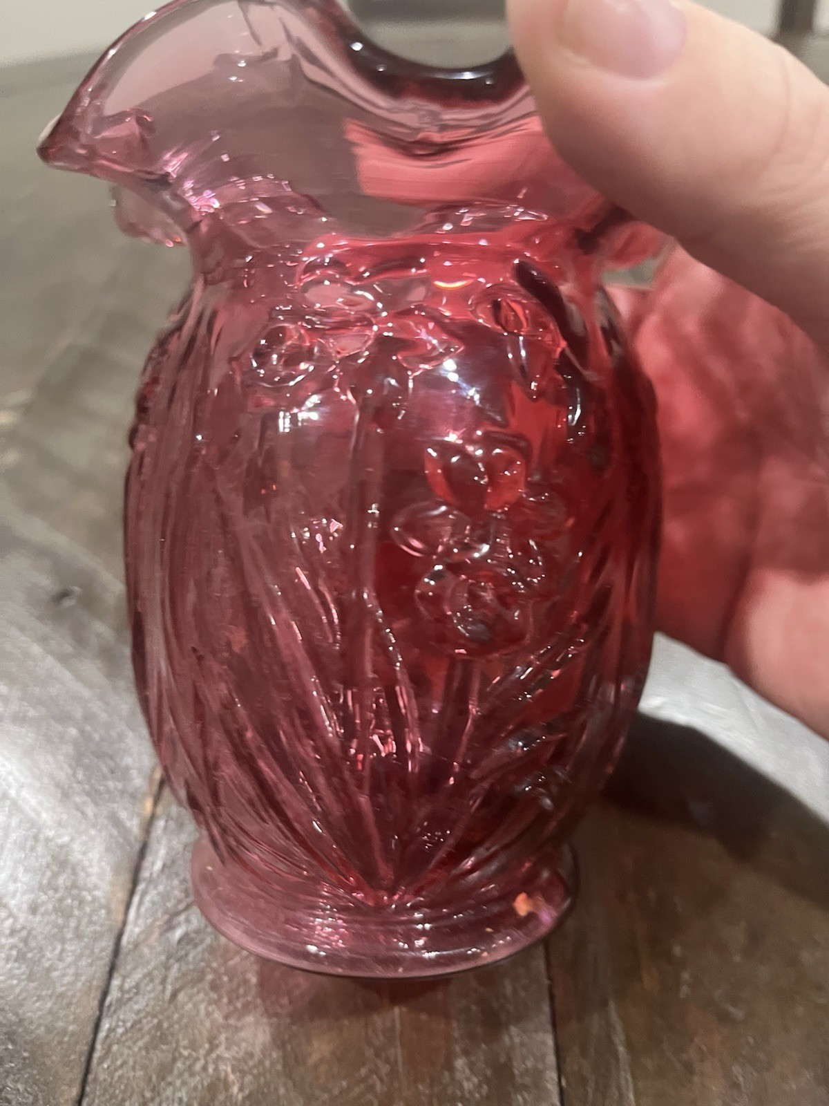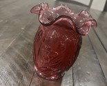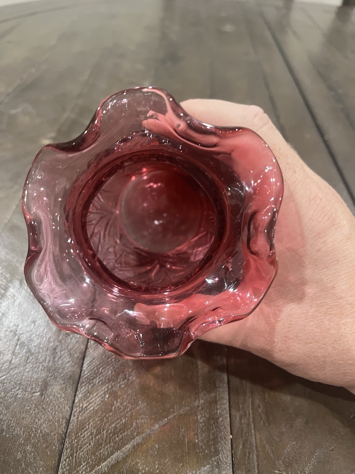 - Fenton Cranberry Daffodil Vase Art Glass Pink Vintage Large 5” Ruffled Rim