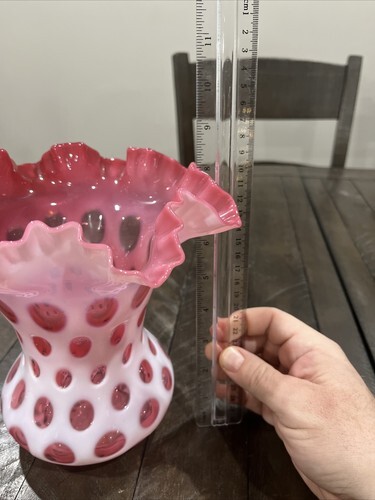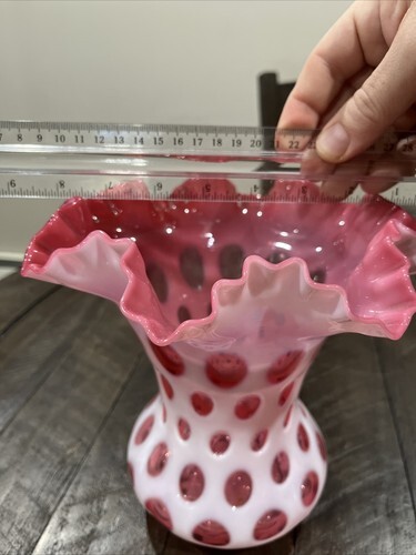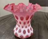 - Fenton Cranberry OPALESCENT Coin Dot 8" Vase with Ruffle Edge