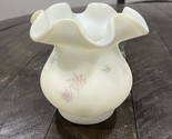 - Fenton Hand Painted Leaves Satin White Pale Blue Ruffled Vase Signed D Hill