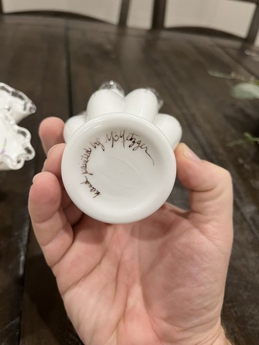 The set is in great shape and is signed by the artist. It would be a great addition to any collection or a wonderful gift for a loved one. Don't miss out on the opportunity to own this unique and stunning set of Fenton vases.