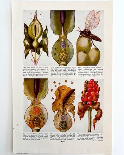 - Fertilization And Growth Of Flowers From Insects 1940s Lithograph Print Art DWT7