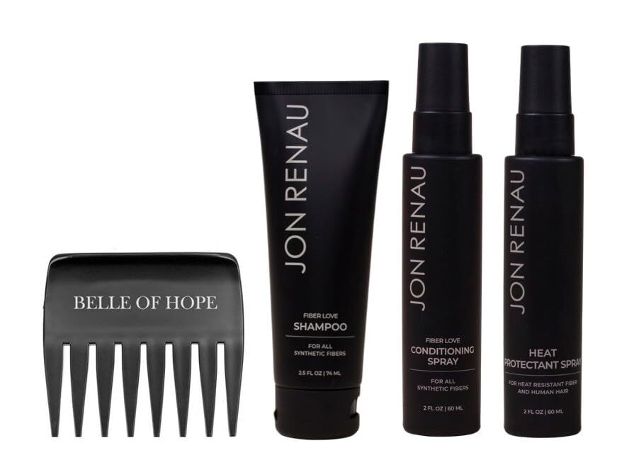 All the synthetic wig care products we recommend in one care kit. Kit includes: 8.5 oz Shampoo, 8.5 oz Conditioning Spray, 8.5 oz Heat Protectant Spray, and Belle of Hope Wide Tooth Comb