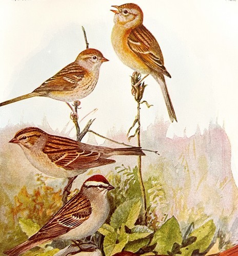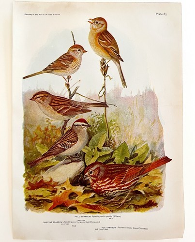 - Field Chipping And Fox Sparrows 1936 Bird Lithograph Color Plate Print DWU12C