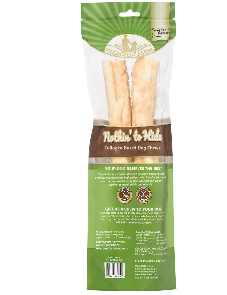- Fieldcrest Farms Nothin To Hide Large Roll Chicken Dog Chews, 10", 2 ct