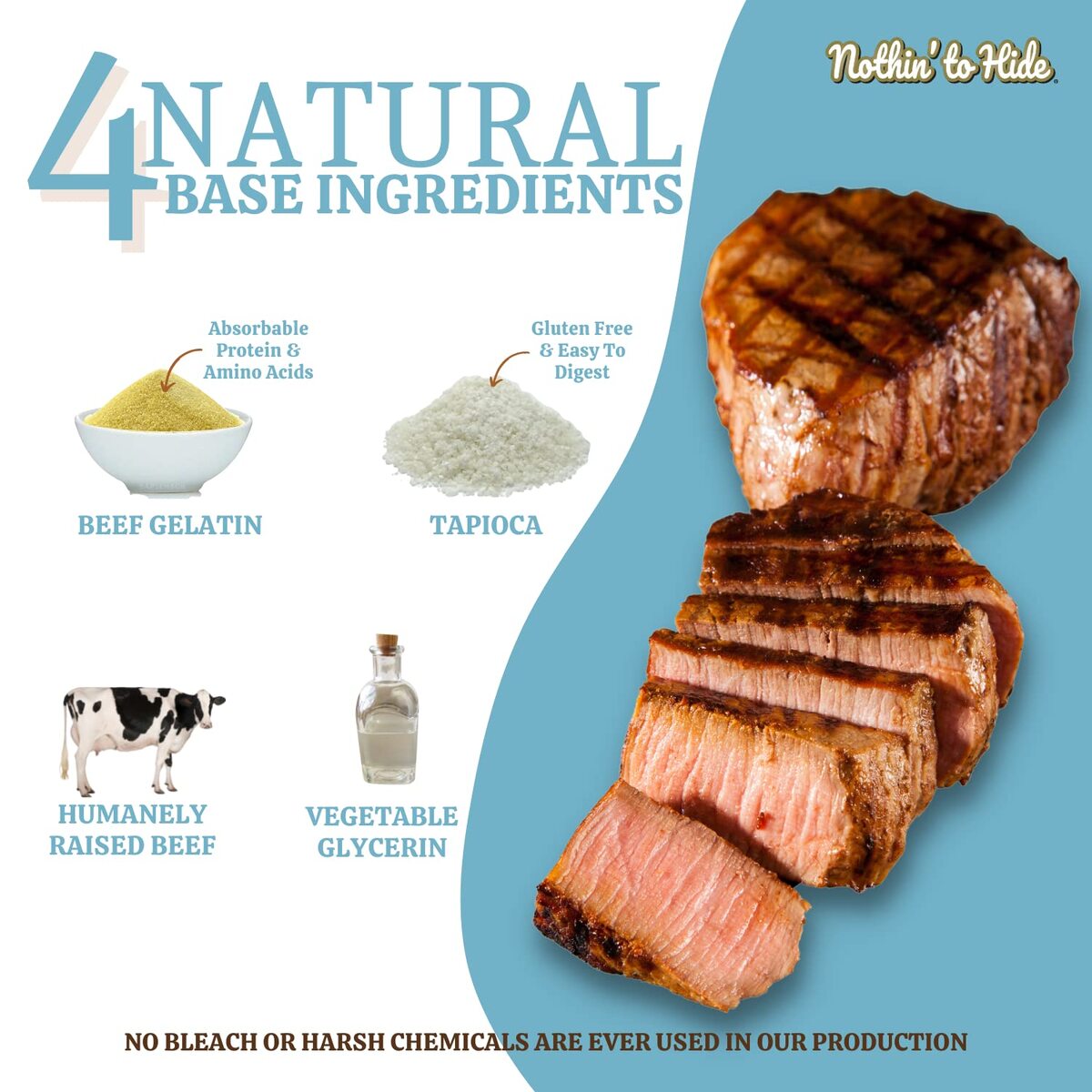 Product description: Nothin' to Hide chews are highly digestible, long lasting, collagen based chews. Available in a wide range of sizes and shapes, our delectable beef coated chews are sure to offer a safe, flavorful chewing experience for your pets. Contains 8 piece Flip Chip in a resealable Pouch.