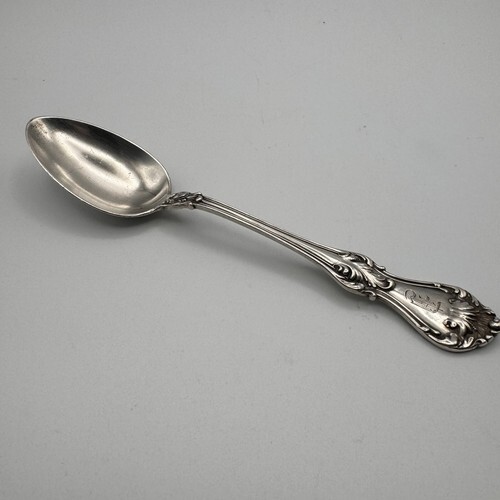 Sterling silver new in factory sleeve Teaspoon 6" in the pattern Fiesole By Greggio. It is not monogrammed and is in excellent condition.