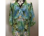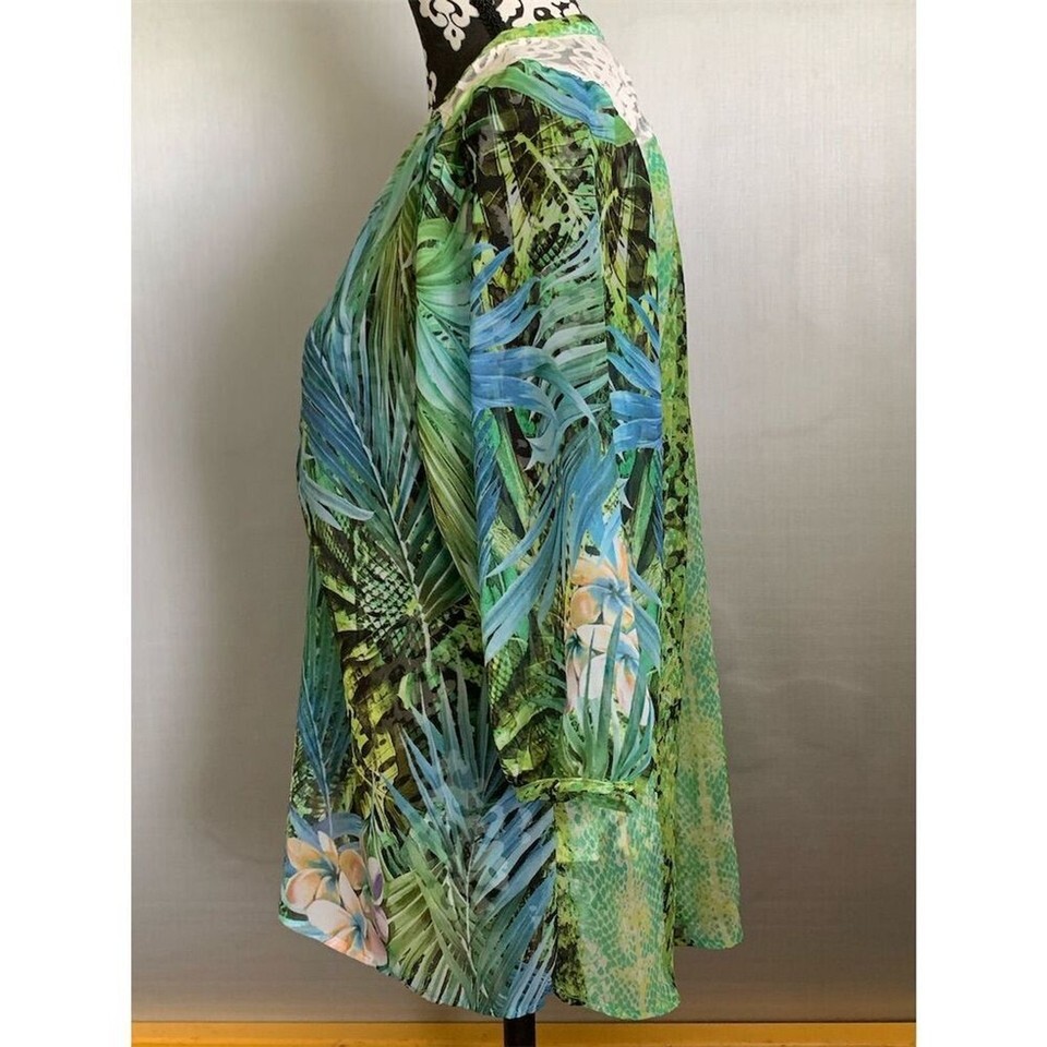 The Figueroa Flower women's blouse in size M features a multicolor floral pattern with lace accents. Made from a blend of polyester and nylon, this basic style blouse has long sleeves and a button-up front. It is semi-sheer and suitable for casual occasions in spring and summer. Manufactured in Vietnam, it requires hand wash only. Pre-owned. Keywords: Figueroa Flower, women's blouse, floral blouse, lace accents, button-up blouse, long sleeve blouse, casual blouse, spring fashion, summer fashion, semi-sheer blouse, multicolor blouse.