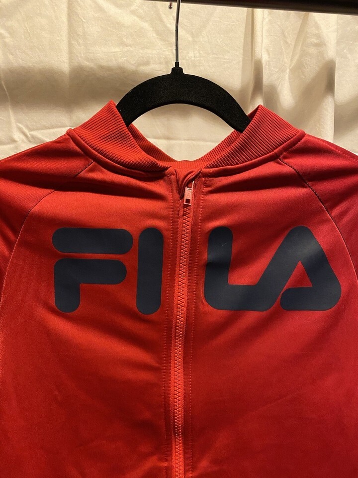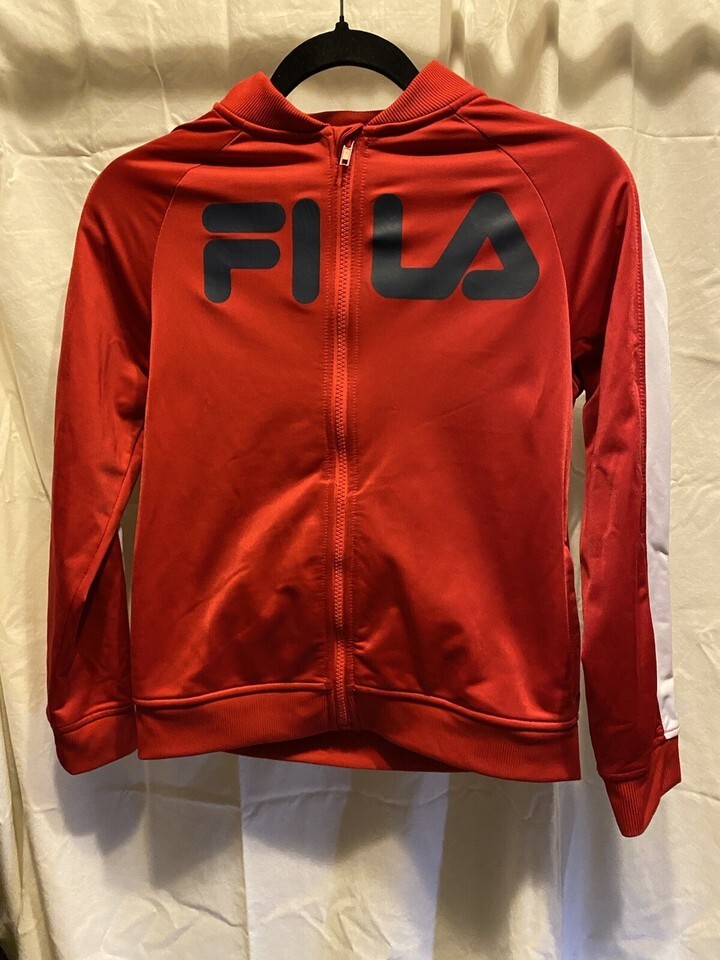 - Fila Sport Boys Jacket Size Medium Activewear Full Zip Red With White Stripes