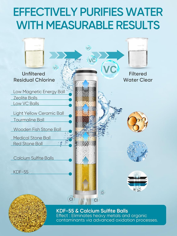 ?Purify the water?:Health is the thing we value most. Our showerhead has a quadruple 15-stage powerful filtration layer. It effectively removes impurities and residual chlorine, heavy metals (lead, mercury, nickel, chromium) and other harmful substances from the water. Enjoy your shower and improves your skin and scalp environment. Improves your health.