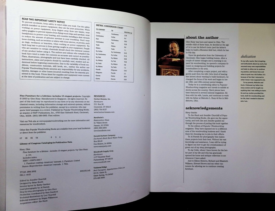 A practical guide for amateur and professional woodworkers, this First Edition of 'Fine Furniture for a Lifetime' by Glen Huey presents 10 elegant projects. Learn to build timeless pieces such as a Shaker press cupboard, Queen Anne drop-leaf dining table, Sheraton field bed, and a Seymour sideboard. Published by Popular Woodworking Books, this manual offers step-by-step instructions and insights from a master craftsman. This specific copy features clean, unmarked pages, making it an excellent resource for your next workshop project.