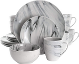 - Fine Marble 16 Piece Stoneware Dinnerware Set in Black and White