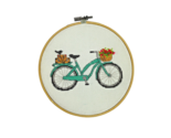 - Finished Cross Stitch Green Bicycle Basket Of Flowers Suitcases Bird Hoop Frame