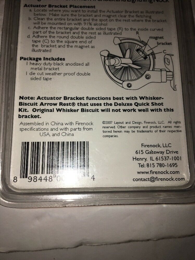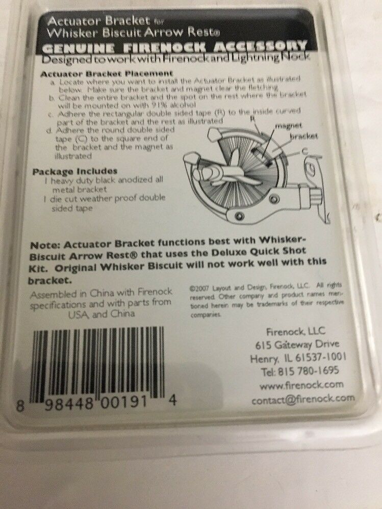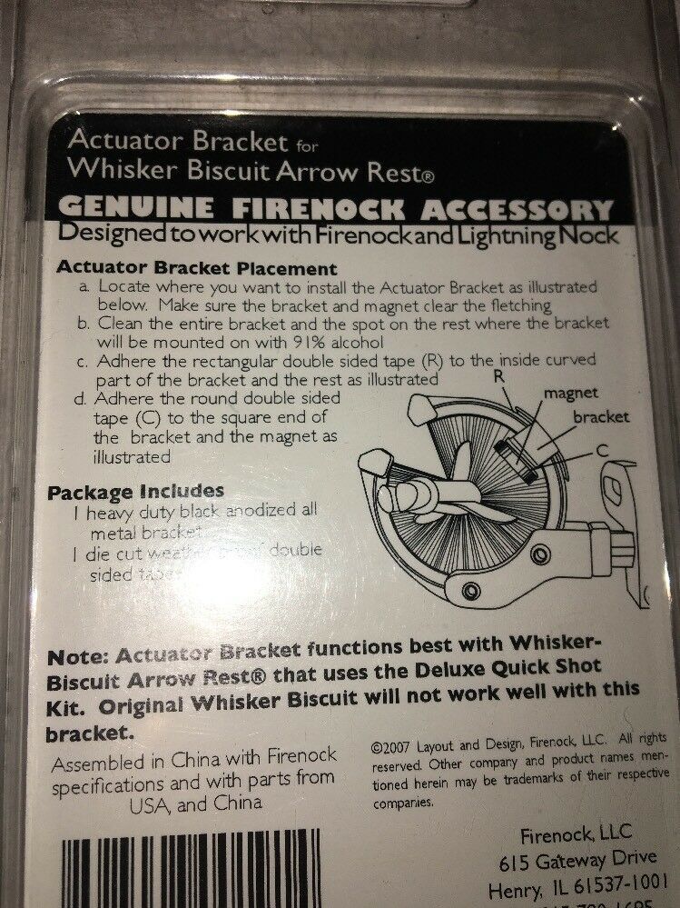 - FireNock Actuator Bracket For Whisker Biscuit Arrow Rest-RARE-SHIPS N 24 HOURS