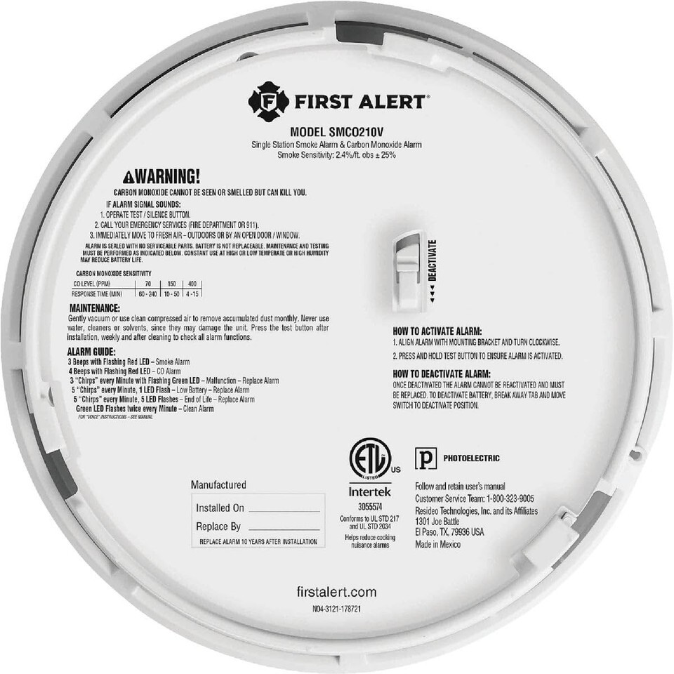 - First Alert 10 Year Battery-Powered Photoelectric Smoke and Carbon Monoxide Det