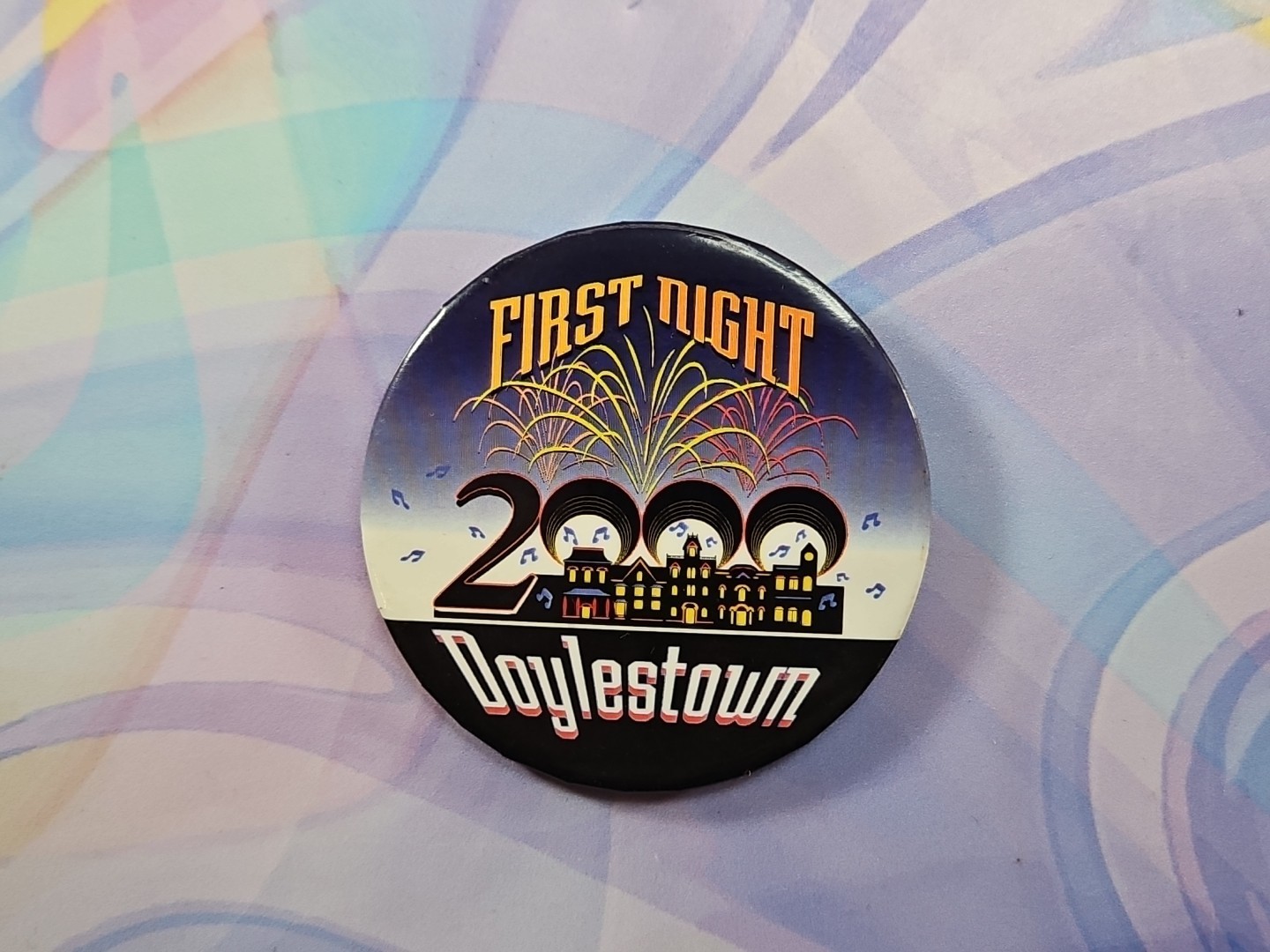 - First Night 2000 New Year Doylestown PA Pennsylvania Button, 2.5'' Vintage