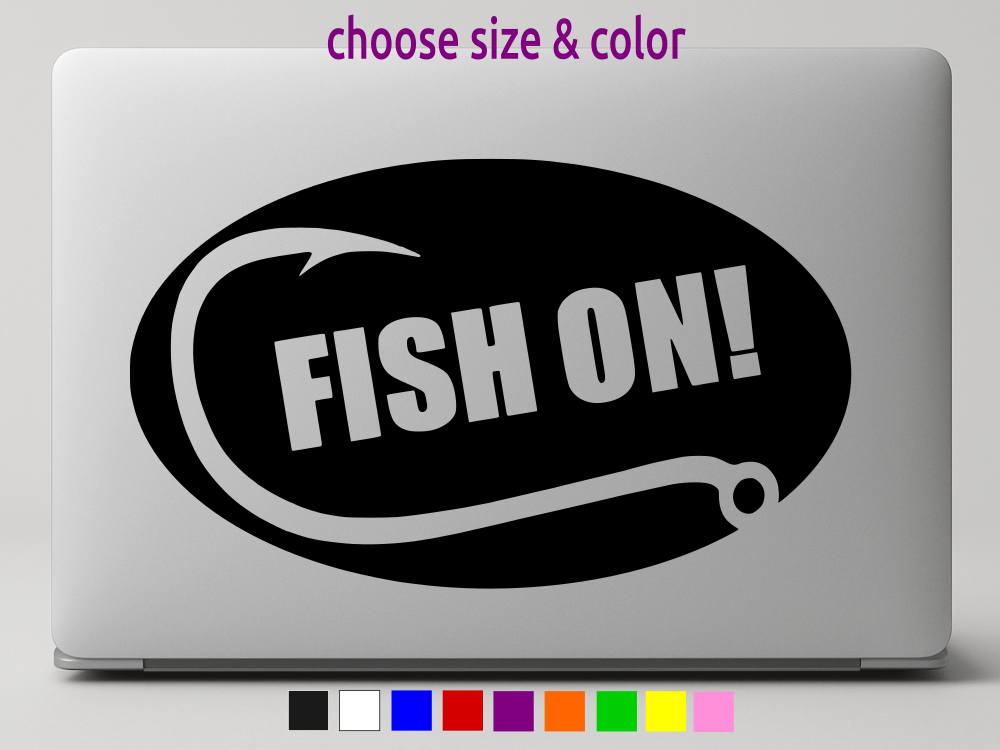 - FISH ON FISH HOOK FISHERMAN Vinyl Decal Wall Truck Sticker CHOOSE SIZE COLOR
