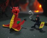 Pre-owned. Rare Red Dragon #7130 from 1995. Rare Black Knight with a Yellow Shield from 1994. Dragon is 4" tall and the knight is 3".