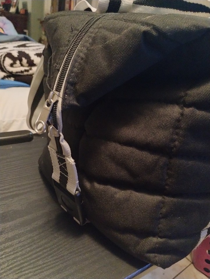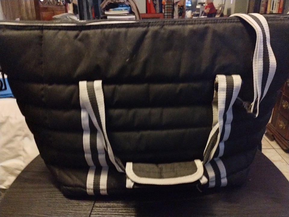 This insulated tote bag is perfect for keeping your food fresh and cool on the go. It features a stylish black and gray design, with a zipper closure to keep your items secure. Measuring 16 inches in length and 15 inches in height, it's large enough to fit all your essentials.
