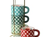 - Five (5) Piece Pioneer Woman ~ MERRY MEADOW GINGHAM ~ Stacking Mugs w/Rack