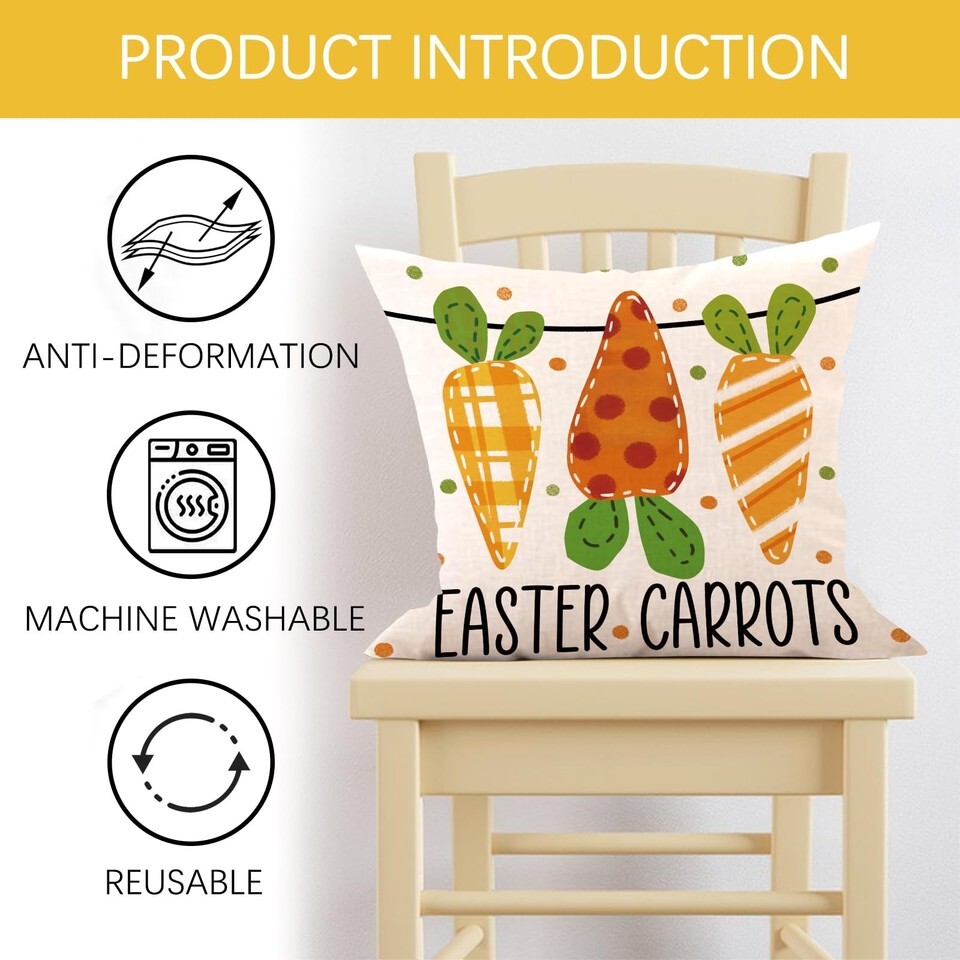 Special Pattern: Comes with 4 packs, these 18 x 18 inches Easter decorative pillow covers are single-sided printed with cute patterns. The pillowcases are printed with tomtes, bunny, carrot, Easter eggs, chicks, stripes patterns. Besides, our pillow covers have words like happy Easter, egg hunt squad