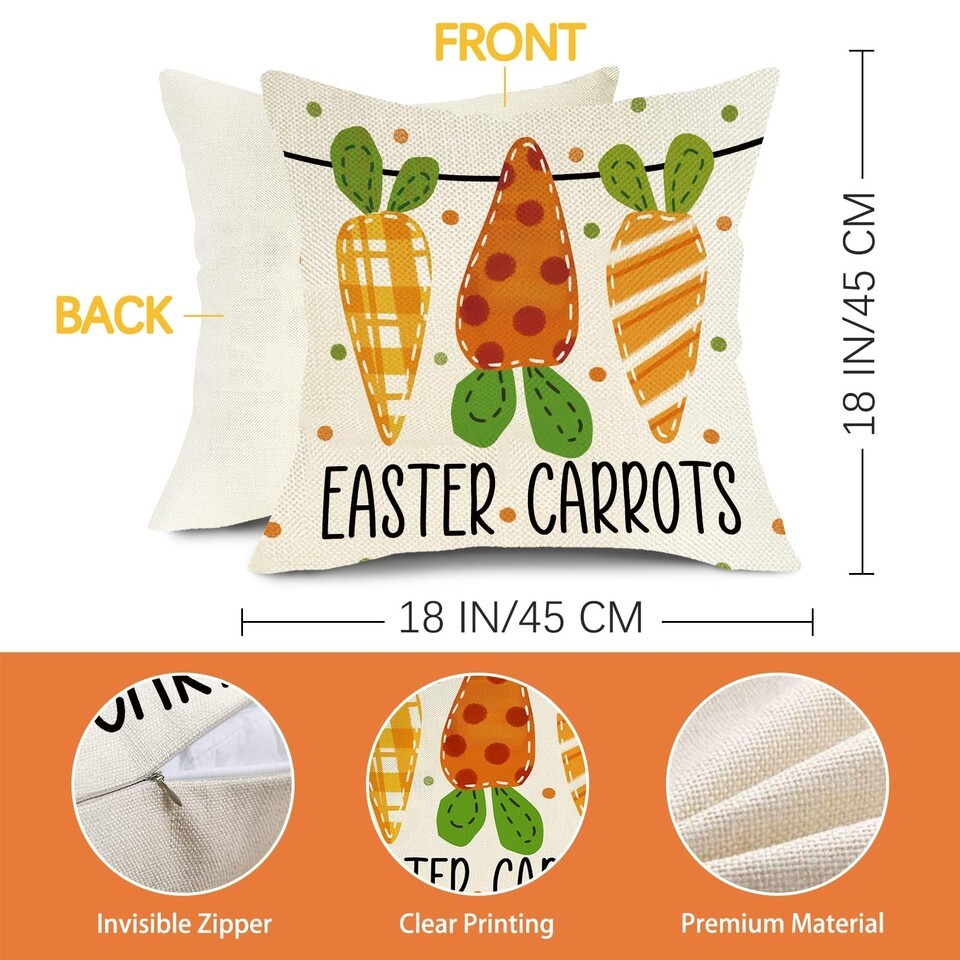 - Fjfz Easter Gnome Throw Pillow Covers 18x18 Set of 4 Orange Bunny Carrot