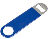 Speed up your bottle service with this black flat bottle opener! Featuring a durable PVC coating this sleek black bar blade makes a handy addition to your busy bar restaurant or event. This easy-to-use opener features a classic flat blade of steel with a thumb hole at one end to pull bottles out of ice and and a letterbox cut at the other to remove the crown seals from a bottle. It easily slips into pockets or attaches to zip strings for fast and convenient use by professional bartenders.