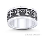 Fleur-De-Lis French Royalty Charm 9.5mm Band / Spinning Men's Ring in Oxidized .925 Sterling Silver