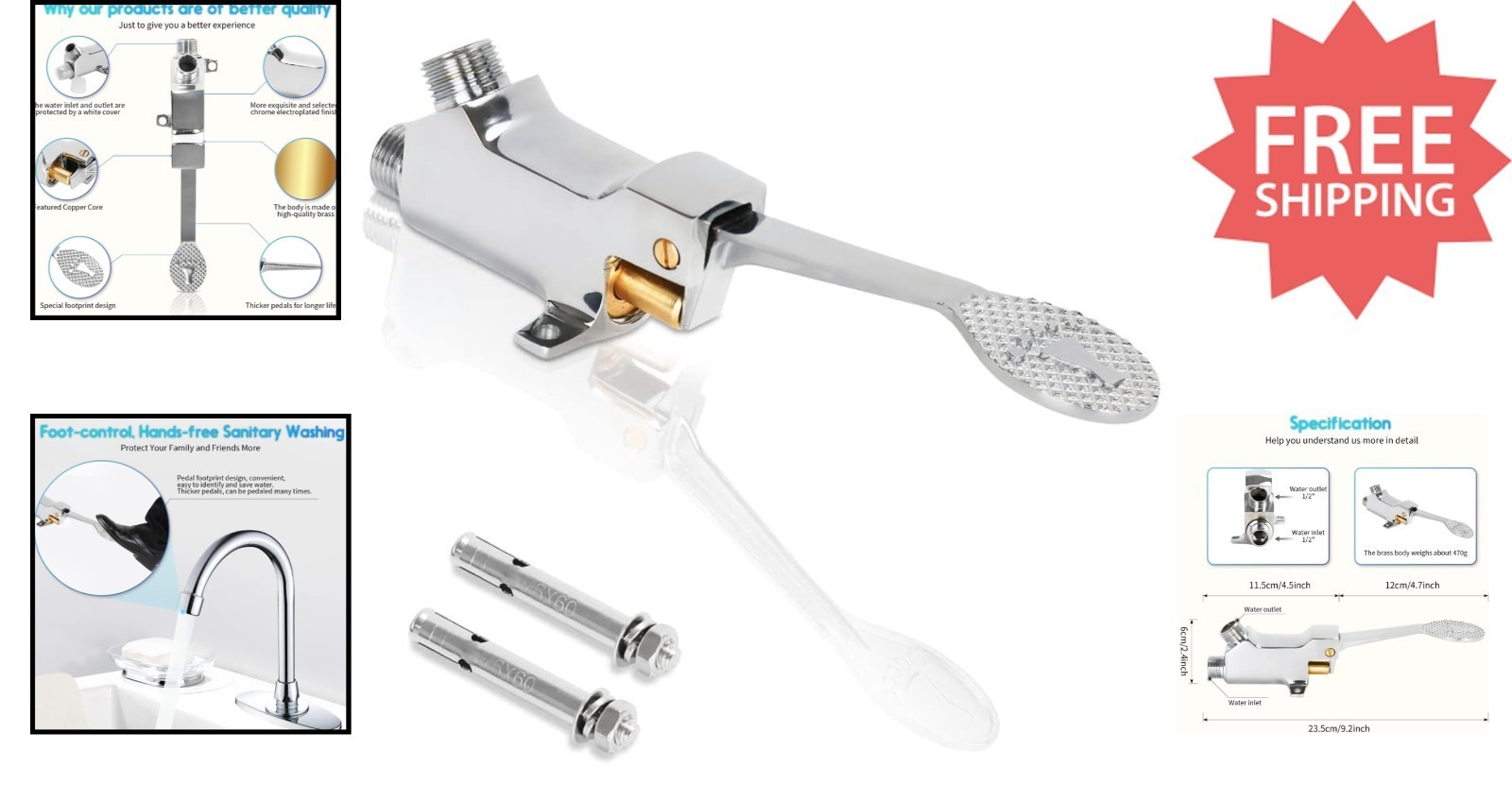 Upgrade your bathroom with this durable foot plate designed for single cold foot-control faucets. Crafted from high-quality copper and finished with a sleek chrome plating, this foot plate ensures a clean and sanitary washing experience. It features a 1/2-inch NPT inlet for easy installation. Please note, this valve is intended for single cold water use. To convert to hot and cold mixing water, additional attachments are available?search for ASIN B07ZX2H4ZS. To ensure fast and reliable delivery, we work with multiple fulfillment partners and suppliers. Depending on availability and location, your order may ship from different warehouses or arrive in packaging that varies from item to item. Tracking details are typically provided shortly after shipment, and customer satisfaction remains our top priority. Please note that due to carrier policies and regional regulations, certain items may not be eligible for delivery to specific states or territories.