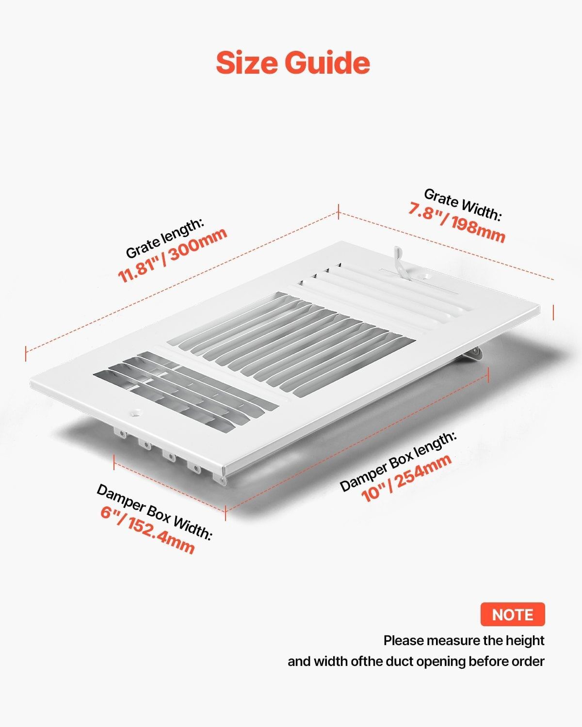 - Floor Registers 3-Way 6 x 10 Inch Iron Floor Vents for HVAC Grilles 6-Pack White