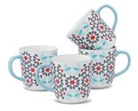 - Floral 14oz Coffee Mugs with Blue Handle, Gray and Red Flower Pattern, Set of 4