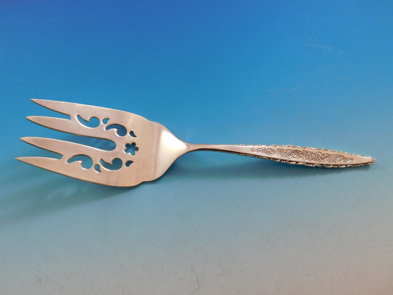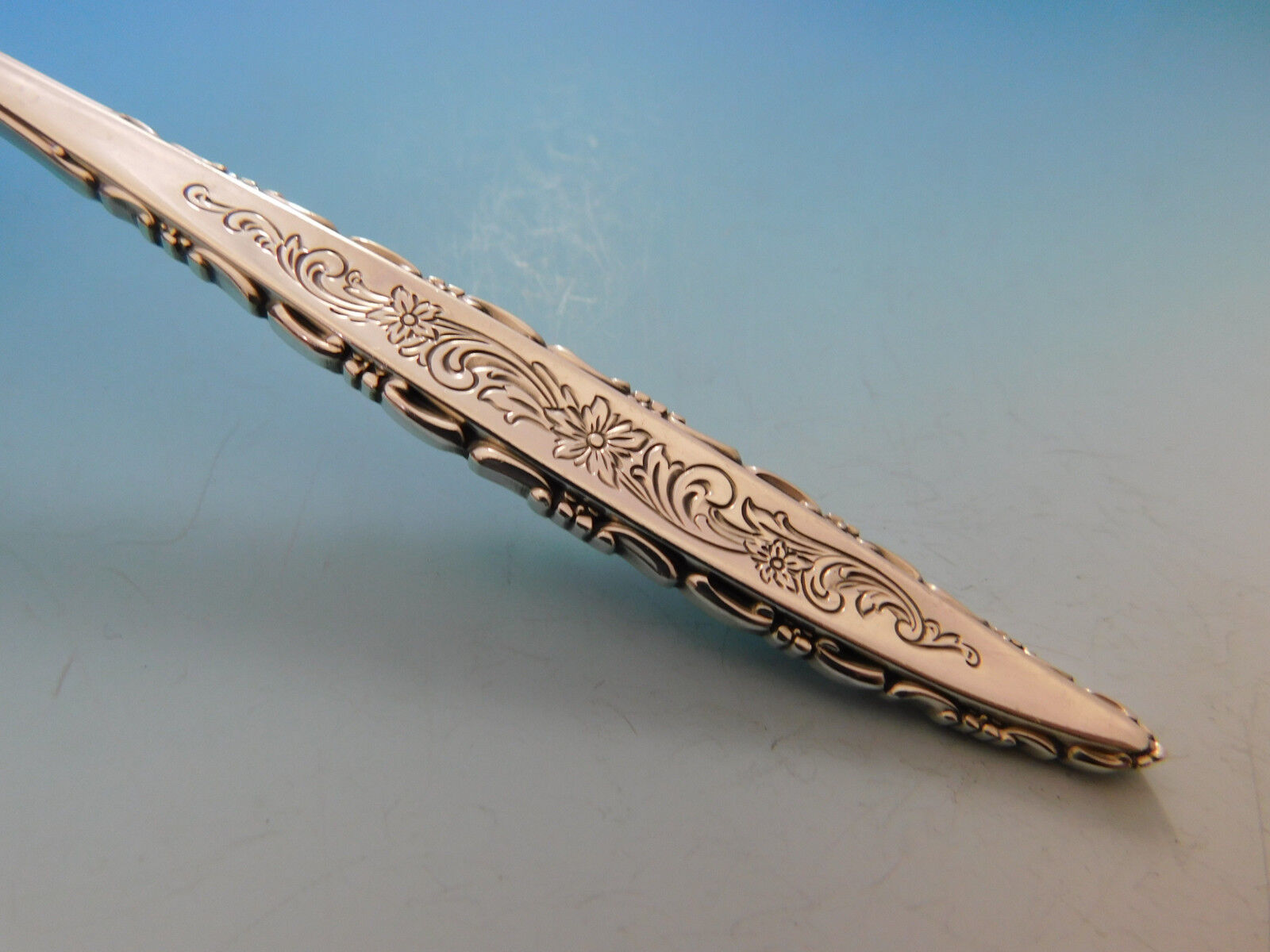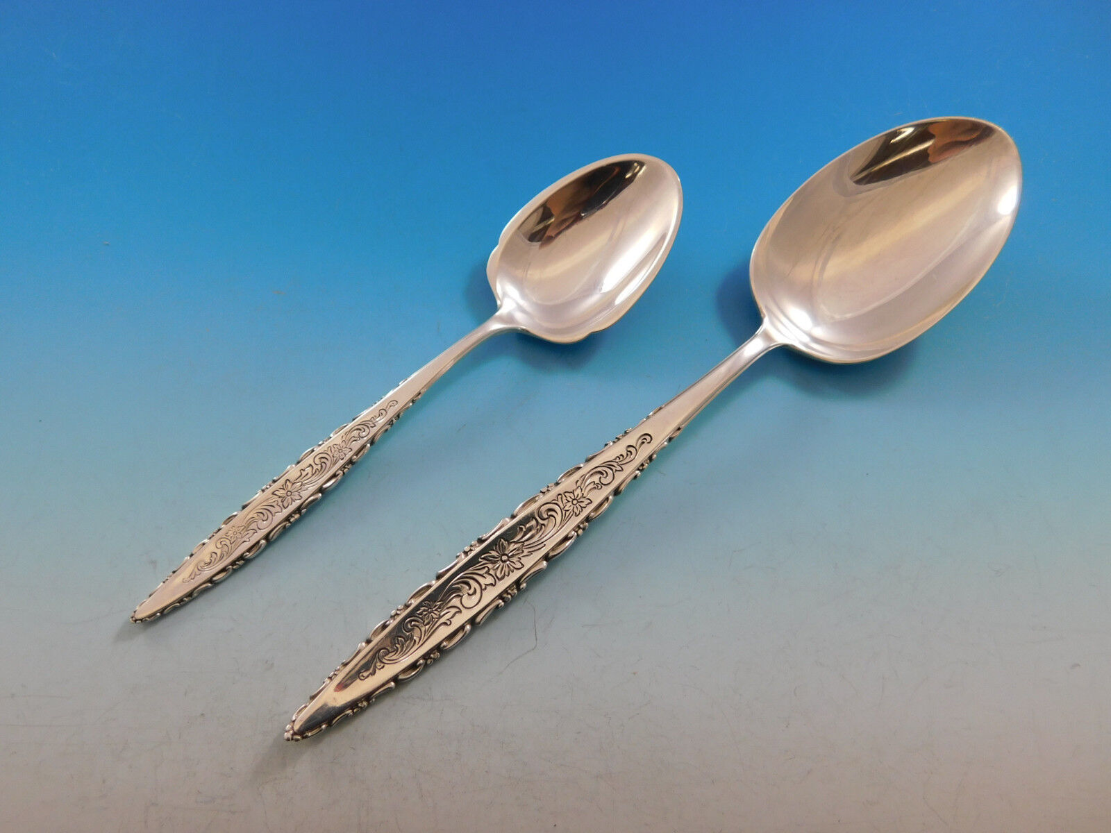 Floral Lace by Lunt sterling silver Flatware set - 54 pieces. This pattern has a slender modern shape with fine lace-like detailing. This set