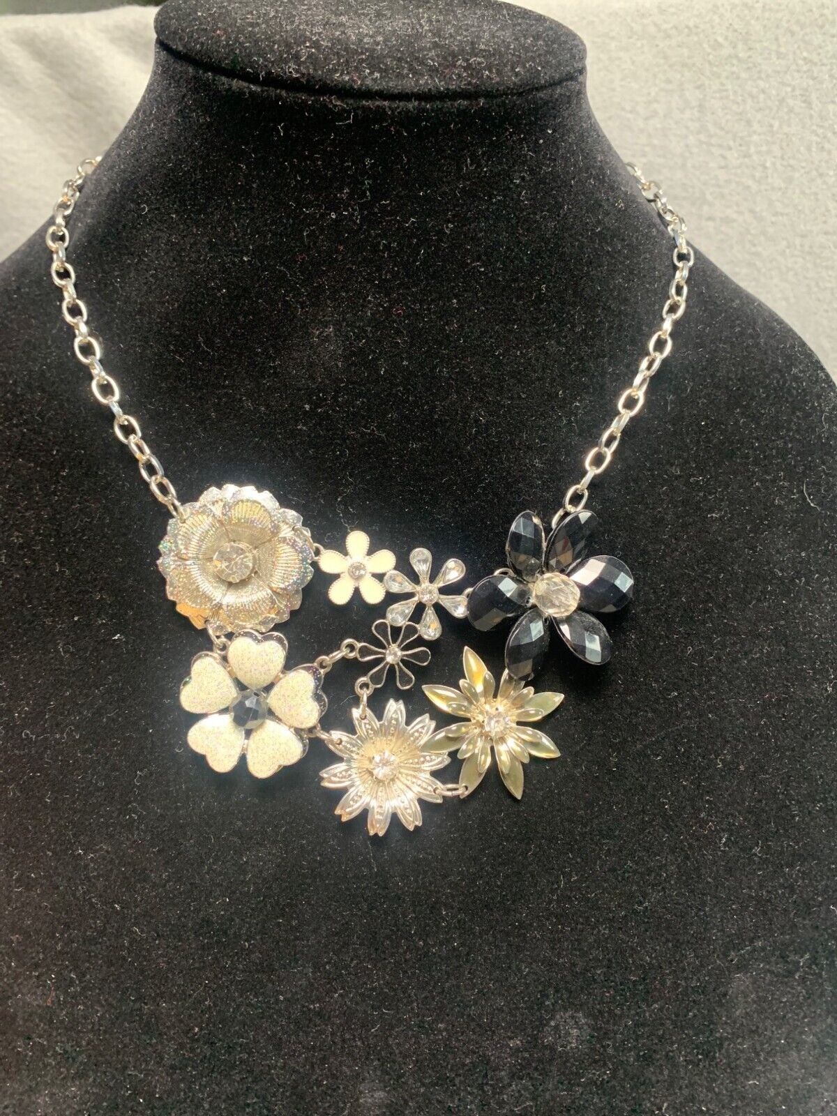 Floral Statement Necklace with Mixed Metal & Crystal Accents