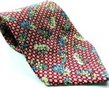 - Floral White Blue Flower Red White Squares Novelty 100% Silk Tie