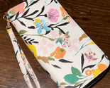 Chic floral wristlet wallet with vibrant colors. Perfect for everyday use.