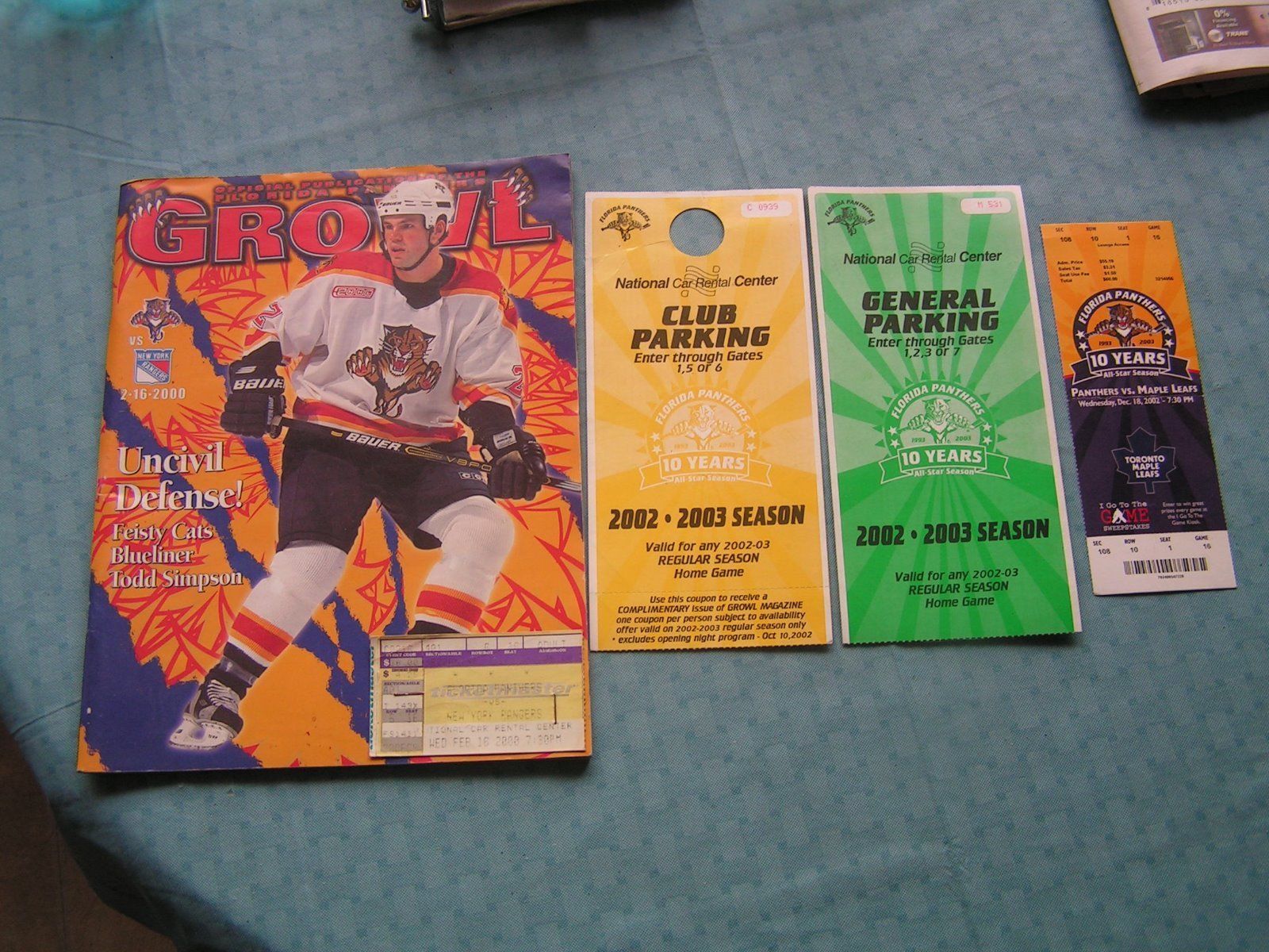 - Florida Panthers Program Vs. NY Ranger, Tickets Stubs, & Passes Lot Of 5