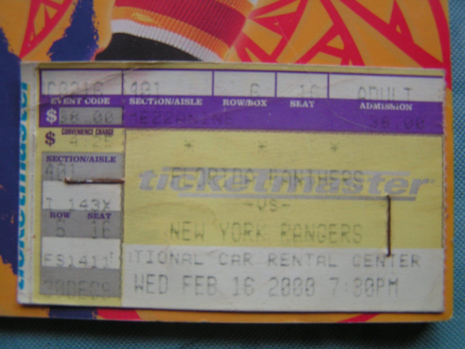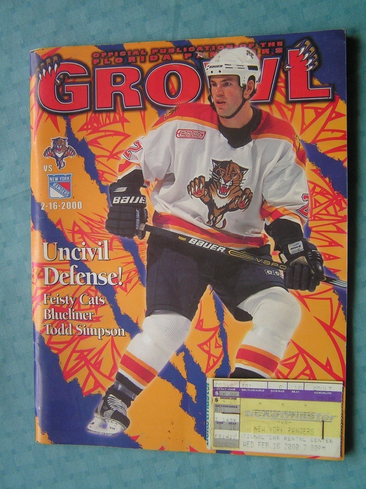1. Feb 16, 2000 Florida Panthers Vs. NY Rangers Game Program With