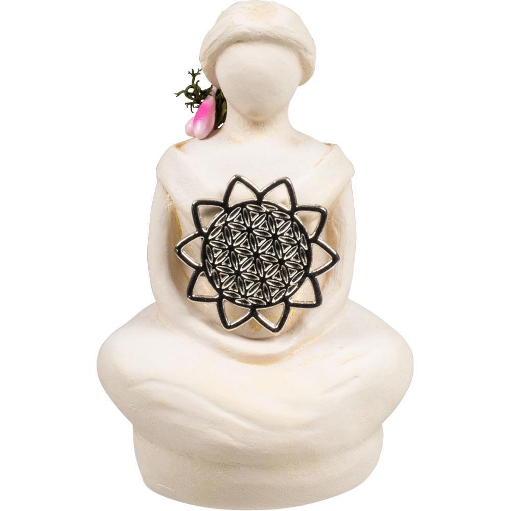 This Goddess figurine has Flower of Life symbol and is made from natural gypsum that contains no harmful chemicals.