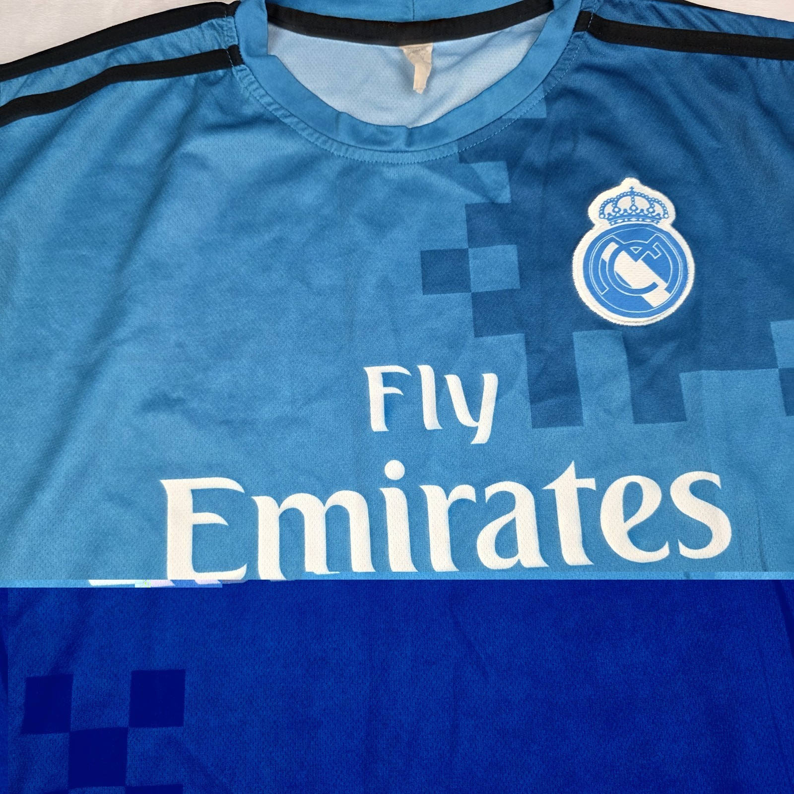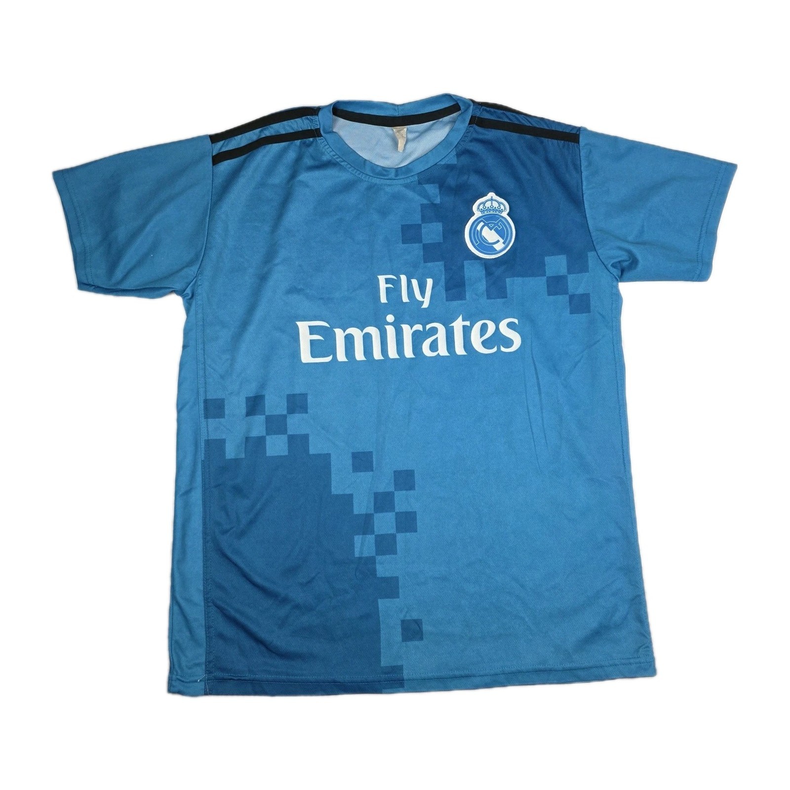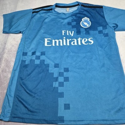 - Fly Emirates Soccer Jersey Medium Blue #27 Real Madrid Short Sleeve Sports