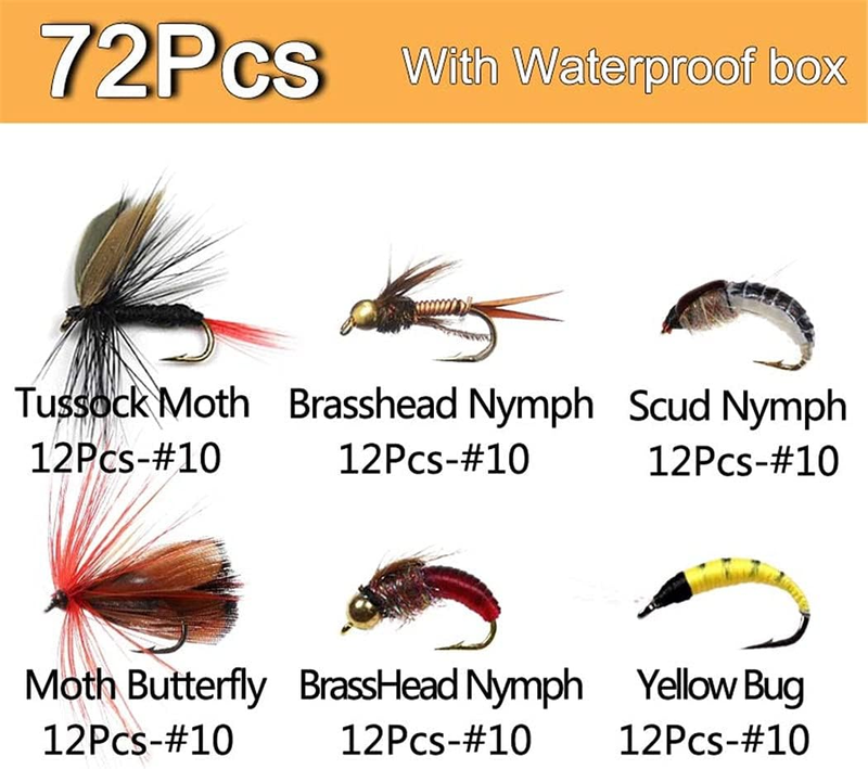 - Fly Fishing Flies Kit with Fly Box 72 PCS Trout Bass Assortment